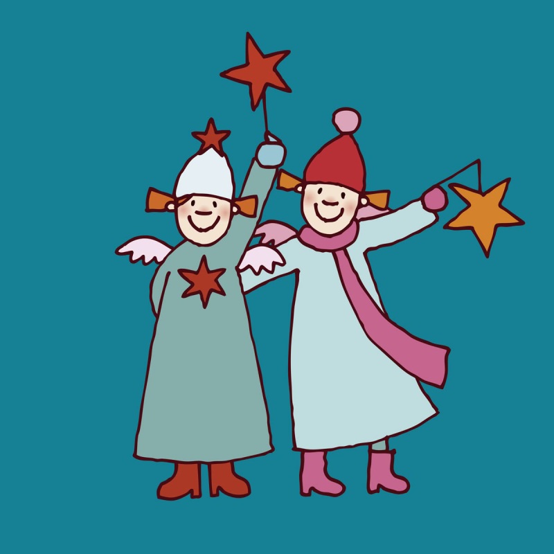 Простий варіант для дітей – гурт із кількох друзів, які співають біля сільської хати. Такі сцени зрозумілі малюкам, бо вони часто бачать їх у казках і мультфільмах. Тут доречно показати й теплий світильник у вікні, і велику зірку, яка веде ватагу.