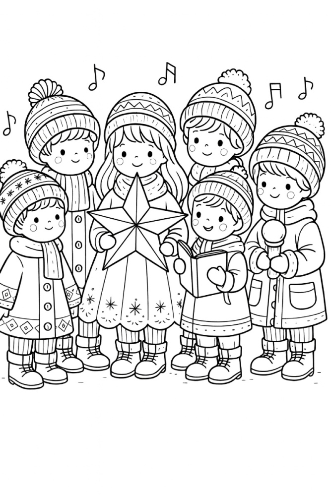 Це велика зірка, що сяє попереду гурту, святковий одяг, дзвіночки чи навіть засніжена хатина. Саме ці деталі роблять малюнок живим і цікавим, а дітям дозволяють швидше зрозуміти, хто такі колядники та чому їхня поява є важливою під час свят.