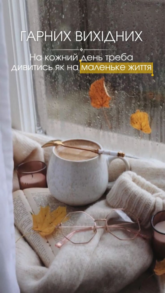 Нейтральні пейзажі, м’які кольори й короткі тексти чудово працюють для широкої аудиторії. Такі картинки можна надіслати будь-кому, і вони завжди сприймаються тепло.