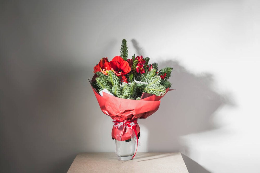 Холодна пора змінює колірну гаму та фактури упаковки. Букети стають більш насиченими, а оформлення – щільнішим.